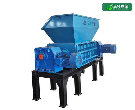 雙軸破碎機主要由料倉、破碎腔、破碎刀軸、動力機構、機架、出料倉、觀察檢修口等部件組成,